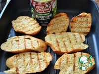 Нарезать багет и подсушить ломтики, в тостере, на сковороде или в духовке. |