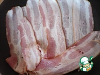 В небольшой сковороде на умеренно слабом огне поджарьте бекон, постоянно переворачивая, чтобы он не подгорел. |