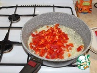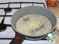 На сковороду выливаем 2 ст л подсолнечного масла. На медленном огне слегка обжариваем лук добавляем чеснок. |