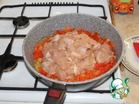 Через 2 минуты добавляем грудку. Обжариваем на сильном огне. |