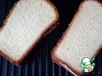 Одну сторону хлебных ломтиков смазать сливочным маслом. Выложить 1-2 столовых ложки начинки. Накрыть вторым ломтиком (маслом внутрь). |