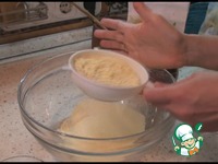 Добавляем понемногу холодную воду и замешиваем тесто. Воды может понадобится чуть больше или чуть меньше, в зависимости от влажности муки. У меня ушло 230 мл. |