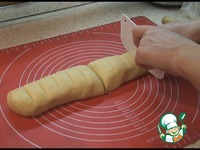 Из отдохнувшего теста делаем колбаску и делим его на равные части. у меня получилось 11 кусочков. Катаем колобки, накрываем их пакетом или полотенцем, чтобы не обветривались. |