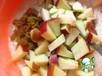 Добавить изюм и кусочки яблок, аккуратно перемешать. |