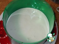 Желатин заливаем 80 мл сливок и оставляем набухать. Вот так смотрится желатин набухший в жирных сливках. |
