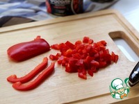 Очистить от семян болгарский перец, нарезать, высыпать к овощам |