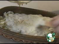 Форму для запекания немного смажем подсолнечным маслом. Выкладываем отваренную капусту. |