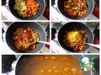 Замечательный суп с насыщенным вкусом. Сколько в нём пользы! 1. Красный рис является одним из видов нешлифованного риса. Вместо шлифовки его подвергают шелушению, что позволяет сохранить большее количество полезных веществ. Поверхностный слой отличается мягкостью, а сам рис обладает большей питательной ценностью по сравнению с его аналогами. 2. Кориандр – не только вкусная, но и очень полезная приправа. Кориандр содержит множество витаминов и полезных веществ, например, жирные кислоты, калий, марганец, фосфор, пектины. 3. Корица богата антиоксидантами. Антиоксиданты защищают организм от окислительного повреждения свободными радикалами. 4... и конечно же овощи!