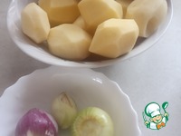 В миске смешиваем картофель с обжаренными ингредиентами. Солим. |