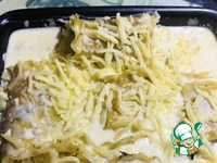 Залить горячими сливками рулетики в форме. Присыпать немного сверху сыром. |