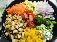 Перемешать, тушить до мягких овощей, не надо пережаривать. Добавить чистую, мелко порезанную зелень. Все перемешать. |