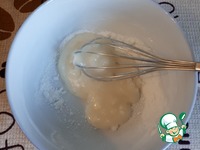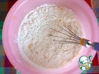 Просеять два вида муки (рисовую и пшеничную), добавить соду и разрыхлитель теста, замесить быстро тесто. |