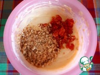Добавить измельченные и предварительно обжаренные орехи, добавить цукаты. |