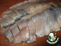 Сельдь разделать на филе. Нарезать ломтиками. |