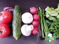 Описание: Вкусный, сочный, хрустящий салат со множеством овощей, с шампиньонами и зеленью. Набираемся витаминами!