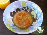 Приготовить заправку для салата из оливкового масла, сока лимона, зерновой горчицы и щепотки сахара. Перец чили (это по вкусу) мелко нарезать и добавить в заправку. Перемешать. |
