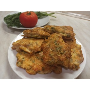 2. Отдельно в тарелке соединяем яйца, майонез, муку и измельченный укроп. Солим по вкусу и хорошо перемешиваем.