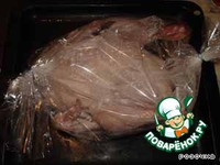 Положить курицу в пакет для запекания и готовить в духовке. Время зависит от величины курицы (1кг курицы готовится примерно 1час) |