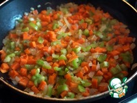 Добавить морковь, перемешать, жарить 3 минуты. |