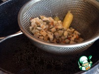 Бульон процедить в другую кастрюлю, снова поставить на плиту, дать закипеть. |
