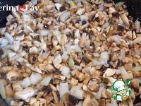 Для начинки смешиваю обжаренные с луком грибы, сыр и сметану (1-2 ст. л.). |