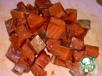 Еще граммов 600 филе неркиного я нарезал небольшими кусочками.