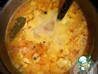 Поэтому…, в общем, я томлю рыбный бульон минимум час. Получается очень вкусный, наваристый бульон.