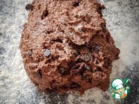 Переложить тесто на присыпанную мукой поверхность и аккуратно замесить шоколад и вишню в тесто. |