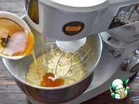 Продолжая взбивать, добавить яйцо в масляную смесь. |