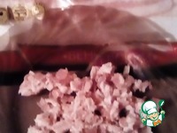 У меня в наличии была сырокопченая грудинка, вы можете взять что то другое. Нарезаем мелким кубиком. |
