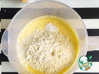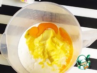 В чаше соединить творог, яйца, масло, молоко, сахар и измельчить до однородности погружным блендером. |
