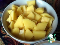 Тем временем подготовить остальные ингредиенты. Картофель очистить, порезать произвольно. |