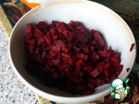 Очень мелко порезать свеклу, если хотите – можно натереть ее на крупной терке. |