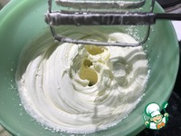 Сливки ( 250 гр.) взбить ручным миксером с 2 ст. ложками сахарной пудры до устойчивых пиков. |