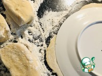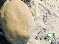 Делим тесто на 5-6 частей. Раскатать скалкой, вырезать круг, я использовала тарелку диаметром 18 см. |