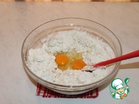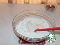 В просеянную муку добавляем горячее молоко и перемешиваем. |