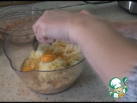 Картофель посолим, поперчим по вкусу, добавляем два яйца и муку. Хорошо размешаем. |