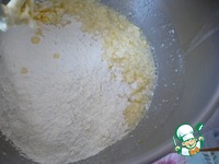 Перемешайте массу и введите сухие ингредиенты: муку и разрыхлитель теста. |