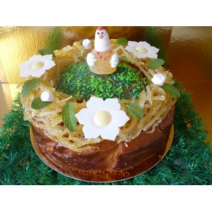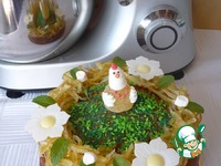Можно добавить в декор немного маршмеллоу, листья мяты, крашеный сахар, мармеладные конфеты и вафельные цветочки, вообщем украшайте пирог по своему вкусу. Приятного весеннего чаепития! |