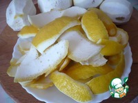 Теперь займемся декором для пирога. Для этого понадобятся оставшиеся лимоны. Срежьте кожуру с лимонов (4 шт). |
