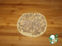 Раскатываем в круг толщиной 3-5 мм. Смазываем растопленным сливочным маслом и посыпаем орехами. |