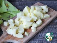 Вскипятить 1 л. воды. Картофель почистить, нарезать кубиком. Выложить в кастрюлю, варить. |