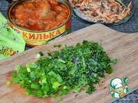Зелень вымыть, обсушить и нарезать мелко. Уместно использовать замороженную или сухую. |