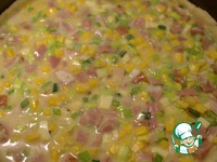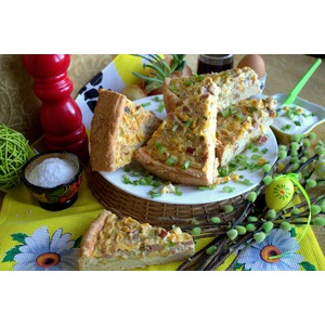 Описание: Можно готовить с рыбой, фаршем или, как у меня, с колбасой и беконом. Остальное-по наличию. За рецепт теста спасибо Любе Ким. У неё пирог был с рыбными консервами. Тесто очень вкусное даже без начинки.