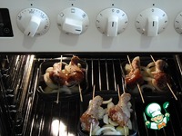 Через 20 минут, вынуть решетку с формами и перевернуть голени на шпажках, для лучшего прожаривания. |