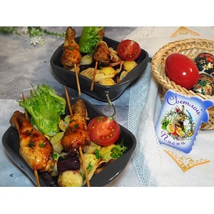 Описание: Отличный вариант горячей закуски для праздничного пасхального стола, а так же легкое второе блюдо в будни, которое не сложно и быстро готовится. Я впервые запекала свёклу под грилем, и мне понравился этот новый вкус. Возможно, кому-то пригодится такой вариант. Кроме того, можно сделать перед праздником заготовку, отварив заранее картофель и свёклу, замариновав голени, и в нужный час быстро запечь в гриле.