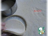 Возвращаюсь к приготовлению теста. Раскатать тесто в пласт толщиной около 6 мм. Необходимо вырезать кружочки чуть большего размера, чем формочки. |
