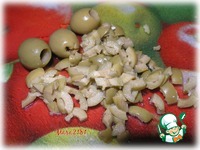 Нарезанные оливки смешать с 3 ст. л. сметаны и немного подсолить по вкусу. |
