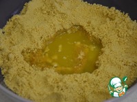 Добавить слегка охлажденное сливочное масло к печенью. Растереть руками. |