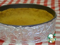 Плотно, в несколько слоев, обернуть форму с коржом в фольгу. |